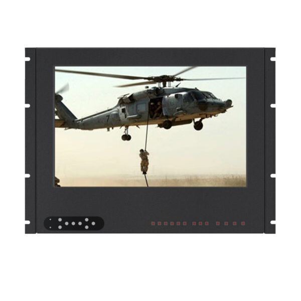 The DITHD MR19xx Series Military KVM Rack Drawer 1U Monitor is designed to meet stringent MIL-SPEC environmental standards. It comes equipped with a standard Chem Strengthened Anti-Glare Cover Lens, with optional features including 461G, EMI-ITO Glass Enhancement, optical bonding, high brightness, and MIL-SPEC touch functionality.