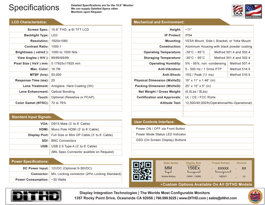 * Military Grade Rugged 15.6” High Bright LCD (1500 Nits)