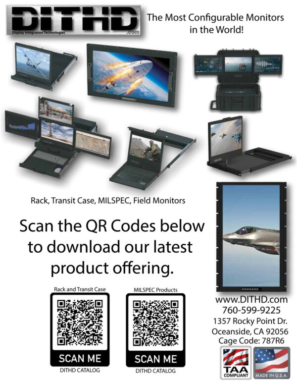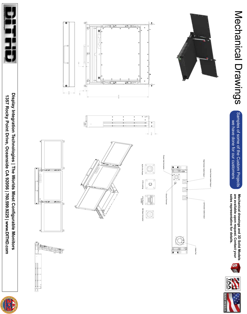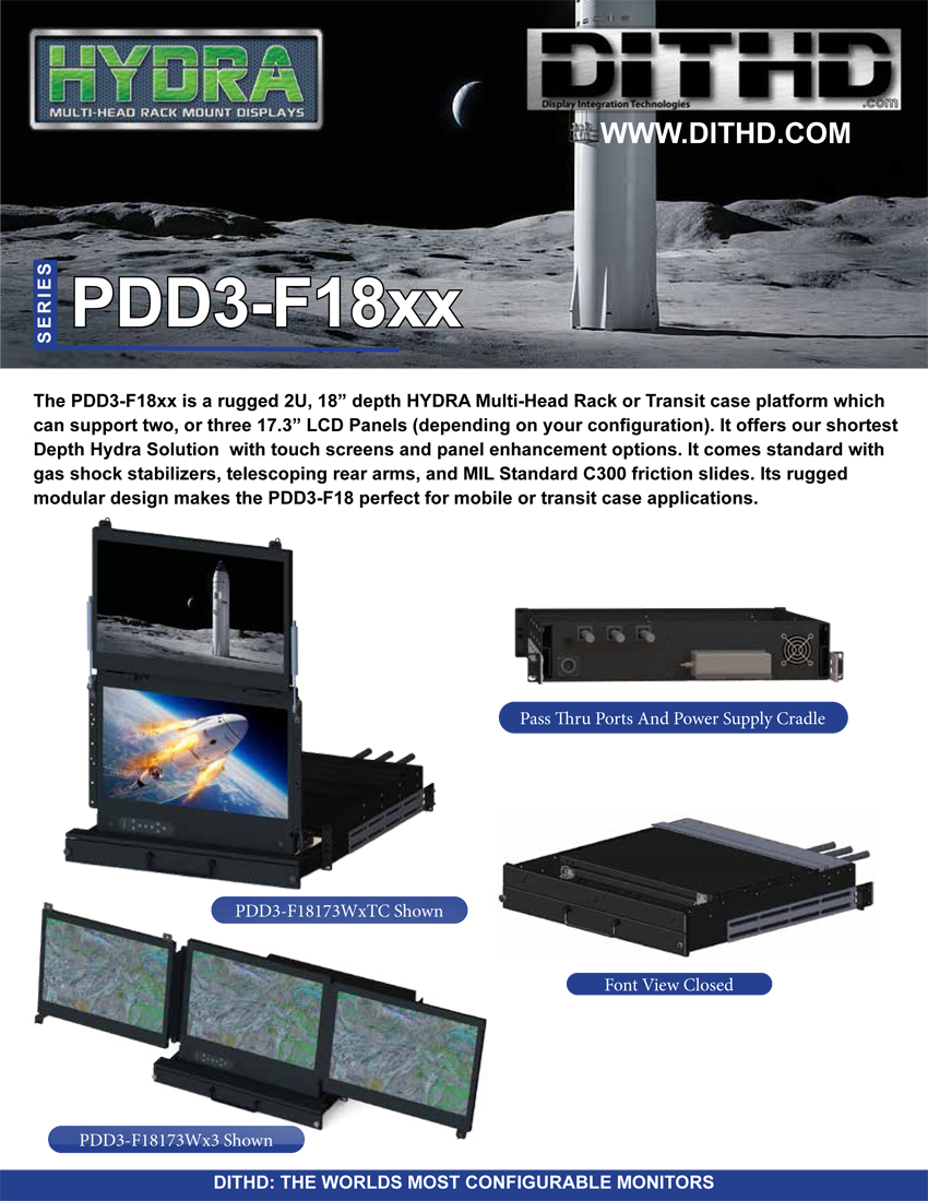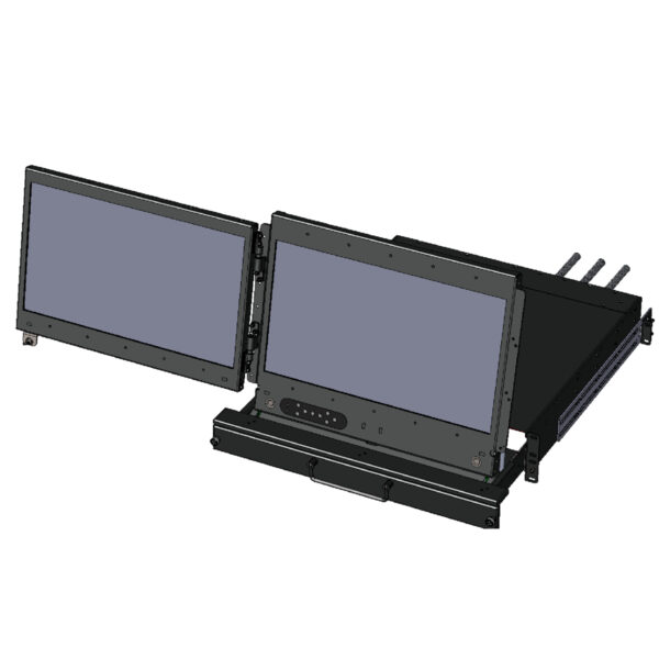 The DITHD MR19xx Series Military KVM Rack Drawer 1U Monitor is designed to meet stringent MIL-SPEC environmental standards. It comes equipped with a standard Chem Strengthened Anti-Glare Cover Lens, with optional features including 461G, EMI-ITO Glass Enhancement, optical bonding, high brightness, and MIL-SPEC touch functionality.