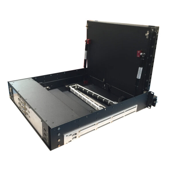 The DITHD MR19xx Series Military KVM Rack Drawer 1U Monitor is designed to meet stringent MIL-SPEC environmental standards. It comes equipped with a standard Chem Strengthened Anti-Glare Cover Lens, with optional features including 461G, EMI-ITO Glass Enhancement, optical bonding, high brightness, and MIL-SPEC touch functionality.