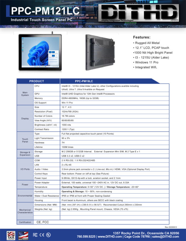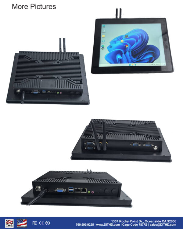 The DITHD MR19xx Series Military KVM Rack Drawer 1U Monitor is designed to meet stringent MIL-SPEC environmental standards. It comes equipped with a standard Chem Strengthened Anti-Glare Cover Lens, with optional features including 461G, EMI-ITO Glass Enhancement, optical bonding, high brightness, and MIL-SPEC touch functionality.