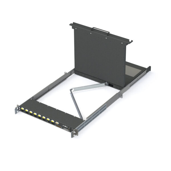 The RD1U-CAT20xx is a low profile 1U Clamshell, Rack Drawer, LCD Monitor and Keyboard combination With a Depth of 20 Inches. This Rack Drawer fits a standard 19” Rack or Transit Case with Depth of 20in. to 28in. It offers entry level KVM (Keyboard/Video/Mouse) switch functionality. Similar to our other platforms, our modular design approach allows tailor made solutions for almost any application or environment. It comes with your choice of LCD Size and Enhancements, keyboard/ pointer option, front face handles and latches, KVM Switch, and AD controller card. It is customizable to your exacting needs. Other options include high bright, optical bonding, and PCAP Touch.