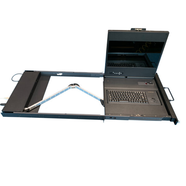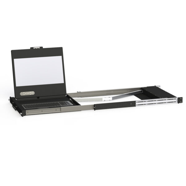 The RD1U-CxT is a low profile 19” 1U Rack Drawer Clamshell with LCD monitor and Keyboard /mouse combination. With its Display and Keyboard mounted to the left (CLT) or right (CRT), this unit is designed for tight spaces. It comes with your choice of keyboard/pointer option, front face handles and latches, KVM Switch, and AD controller card. It comes in 24, and 26” depth, depending on monitor size and KVM Switch options you choose. Other options include high bright panel, optical bonding lens, and Resistive or PCAP Touch.