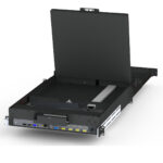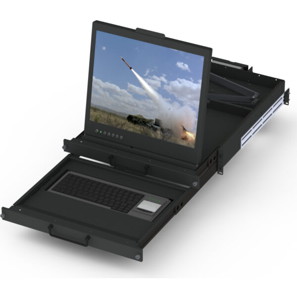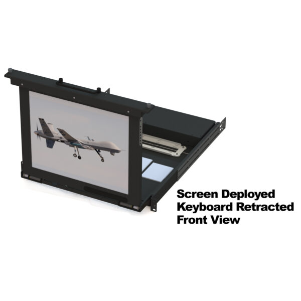 The RD2U-S20 is literally our RDKB, keyboard drawers series, combined with our PDD, pivot display drawer series. all built into one chassis. It can expand to all of the keyboards available in our RDKB series and also all the monitors in the PDD series. With the addition of KVM’s (keyboard, video, mouse switches) to expand the product line to just about any option that you would want in a single monitor rack drawer product.